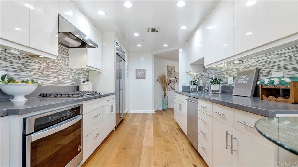 This prestigious unit is located in the luxurious Beverly Hills condominium, Chateau de Chene. This open floor plan has gorgeous hardwood engineering wood floors, bright recess lighting, and crown moldings throughout. A luxurious master bathroom features a brand new gorgeous ensuite bath with dual vanity over-counter sinks, 3 touch LED mirrors, spa-like tub, and walk-in shower. Newly painted walls and ceilings, and new appliances, and more! The complex has an oversized rooftop patio with 360-degree views, a fitness center, a meeting room, guest parking, gated parking, and a security guard/doorman during daytime hours.